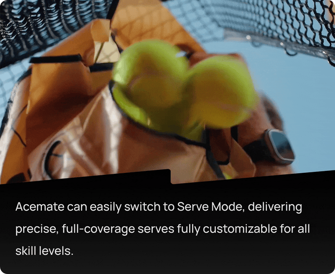 Practice your volley? Acemate’s got you! Train at the net with fast-paced, controlled feeds tailored for volley drills. Improve your reaction speed, hand-eye coordination, and net coverage with consistent shot delivery designed for close-range rallies.