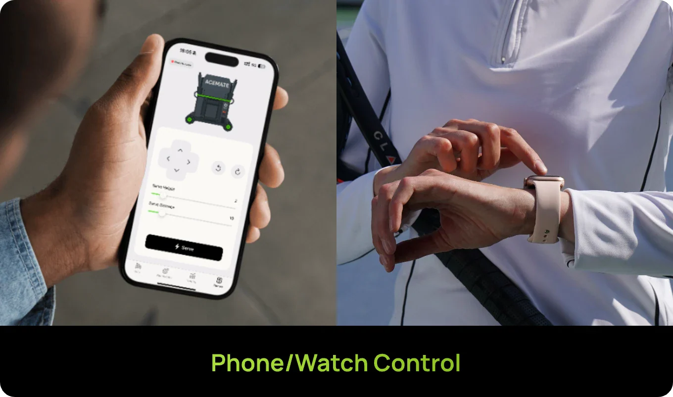 Easily connect Acemate to your Android, iPhone, or Apple Watch via Bluetooth, and use the intuitive app to customize your session before or even during a rally fully.