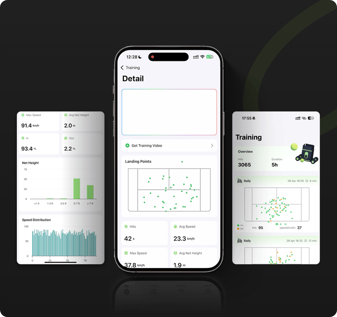 It dynamically adjusts rally intensity based on your performance and movement, while recording every detail to generate a personalized performance report.